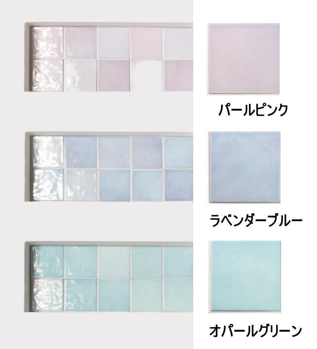 シール 100mm角タイル 全6色の詳細 マーレ 波面 優しい艶で、かわいいオシャレなモザイクタイル。