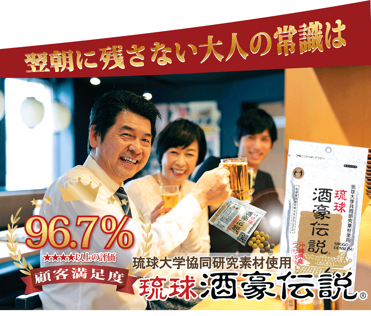 【送料無料】琉球酒豪伝説 20包×6シート【業務用】 【三角テーブルポップ/飲み方フライヤー付き】 ⇒飲食店、店舗様におススメ^^ 大人気の沖縄No.1ウコンサプリ【20包入×6シート】 (1.5g×20包)×6シート 約2年 保存方法:高温多湿を避け、冷暗所に保存して下さい。