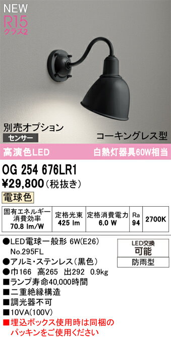 無料プレゼント対象商品!エクステリア 屋外 照明 ライトオーデリック(ODELIC) 【ポーチライト OG254676LD】 ヴィンテージ ビンテージ アンティーク レトロ ブラケットライト 玄関灯 門柱灯 黒色 LED 電球色